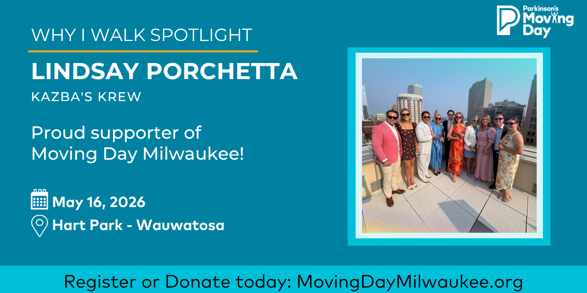 “This year, my family and I decided to participate in moving day to support my Mom who was diagnosed with PD 3 years ago, and our Papa (her father) who passed away several years ago now. She is one of the strongest, most positive people we know, and to have to see her struggle with this disease can be really difficult. We are hoping this walk can lift her spirits and bring her (and others) support, as well as raise money to hopefully one day cure this awful disease! Let’s go Team Kazba!”