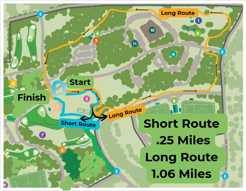 The Moving Day Walk is for participants of all ages and abilities: .25 mile option and a 1.06 mile option. Both paths are fully paved. Click HERE for the walk route map.