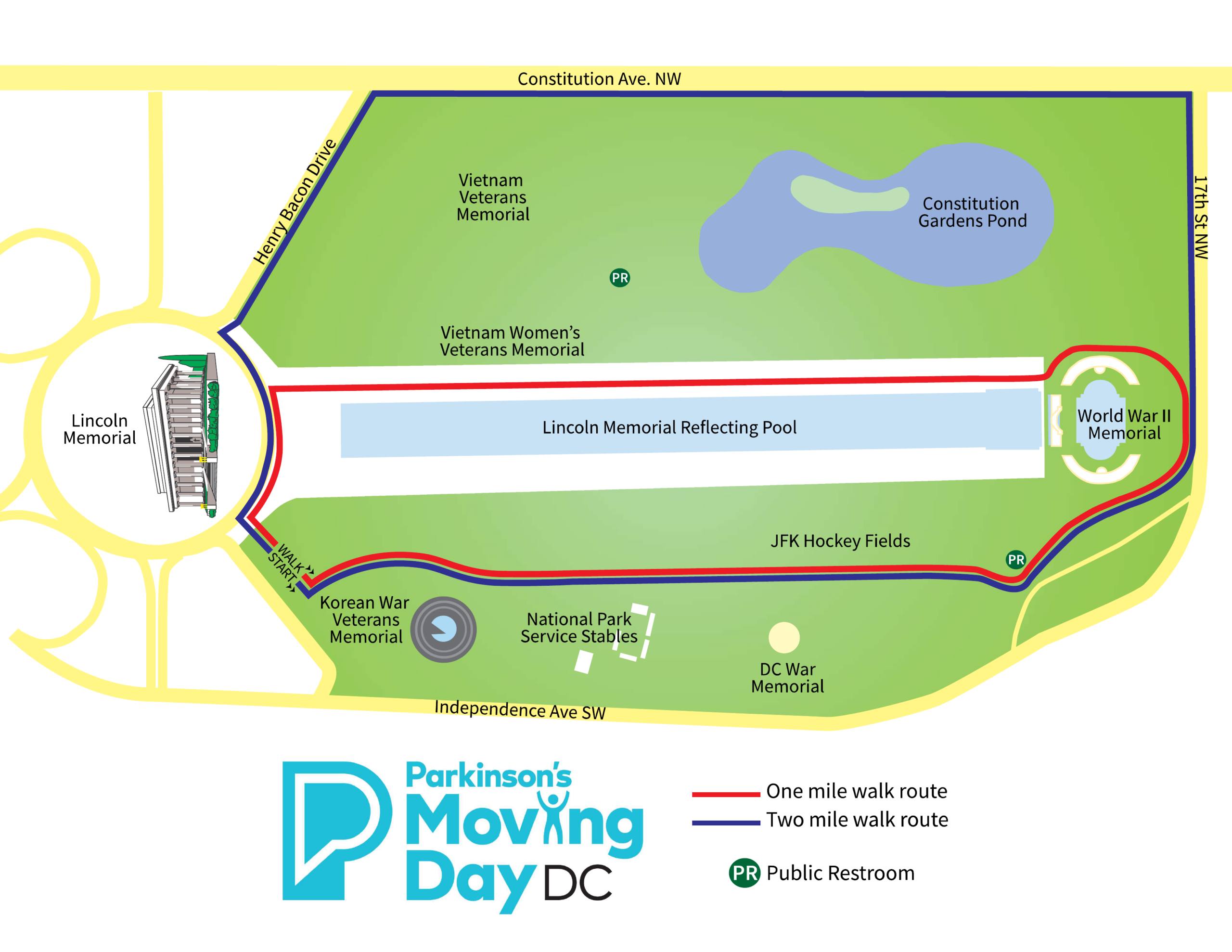 Moving Day offers options for all ages and abilities, we have two walk routes available for you to consider: a shorter ¾ mile walk around the Reflecting Pool or a 2-mile walk circling the Lincoln Memorial and Constitution Gardens. Click here for the walk route map.