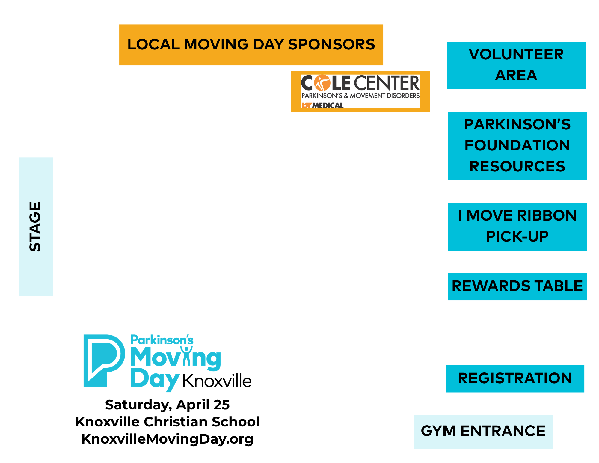 We strongly recommend making donations online before event day. All participants must be registered in advance at MovingDayKnoxville.org. You can also help us prepare by downloading the Fundraise for Parkinson’s App before event day to stay up to date with day of event information, and easy communication with your team.